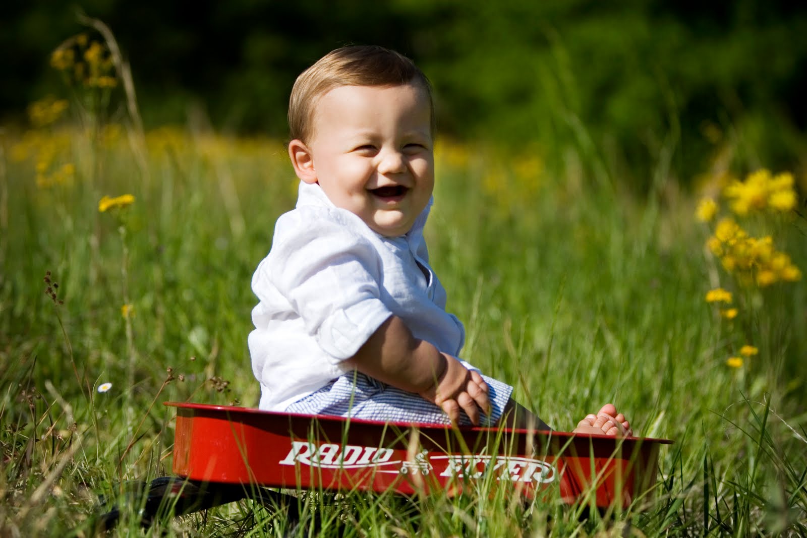 Graham did not know what was going on today. Sat him in the middle of a field in a rusty wagon with three crazy ladies making funny faces at him???? We did get one smile out of him. So big that you can't even see his eyes. I love it! He really was more interested in eating flowers. Bless his heart, I guess his mom never feeds him.